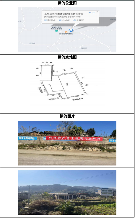 1、甕腳收購點土地:坐落于余慶縣構皮灘鎮(zhèn)甕腳村;土地使用權性質:劃撥;證載土地使用權面積:1207㎡;起拍價:7.72萬元;保證金:1萬元;